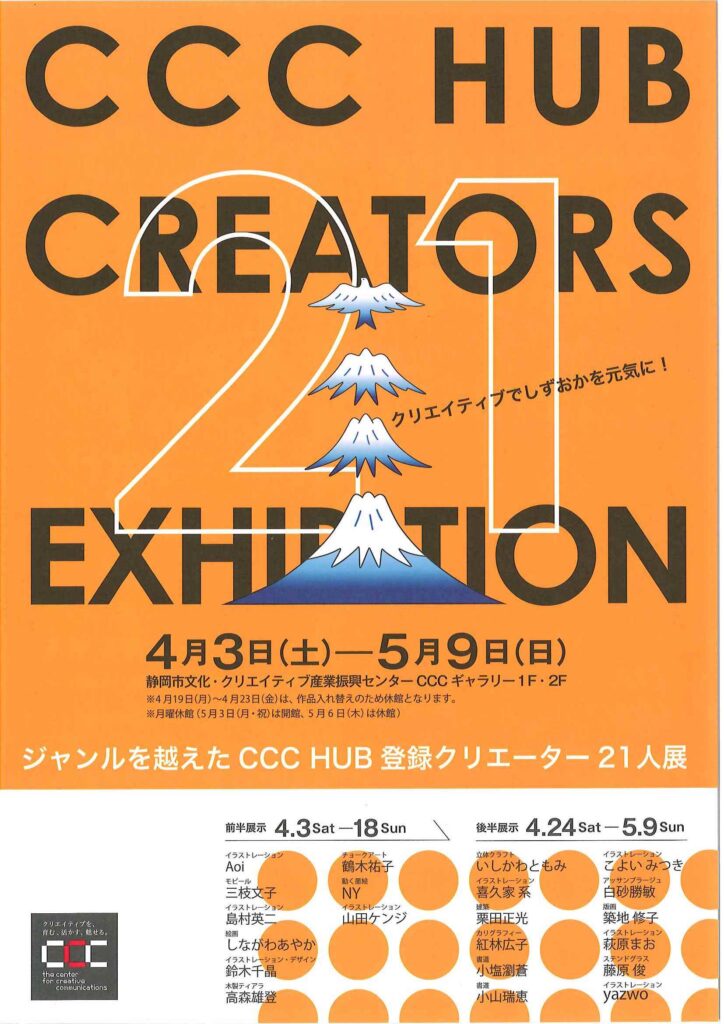 展示イベント 2021/6/19~7/18 静岡のすごい技、見せます。Foods &Kids展 詳しくはこちら 展示イベント 2021/4/3~5/9 HUB登録クリエーター21人展 詳しくはこちら 123
